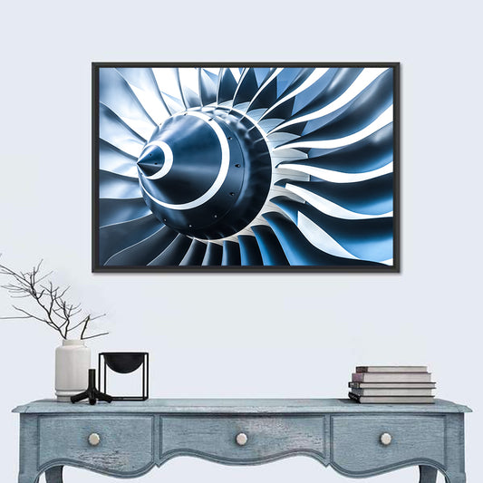 Blue Tone Jet Engine Blades Closeup Wall Art