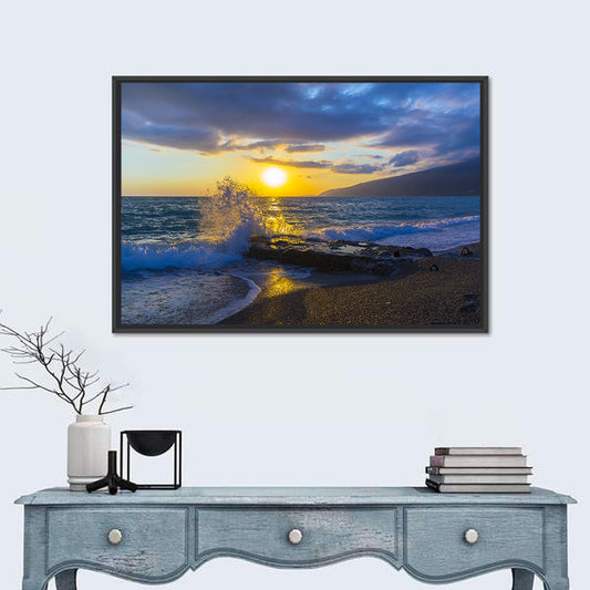 Splashing Waves Sunset Wall Art