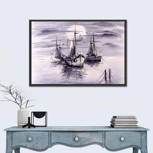 Boats In Sea Painting Wall Art
