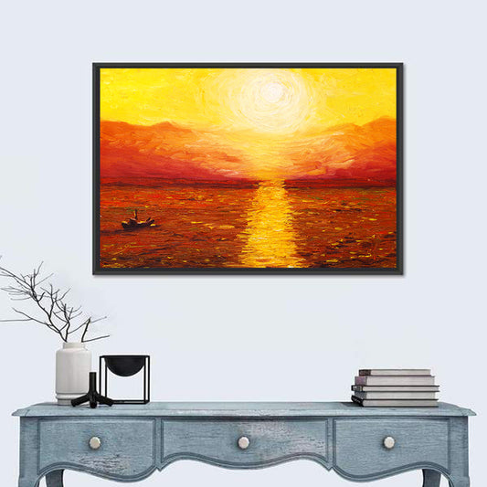 Sea Sunset Illustration Wall Art