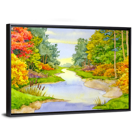 Autumn Forest Stream Illustration Wall Art