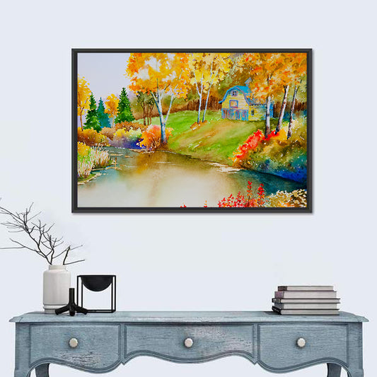 Autumn Landscape Near Pond Wall Art