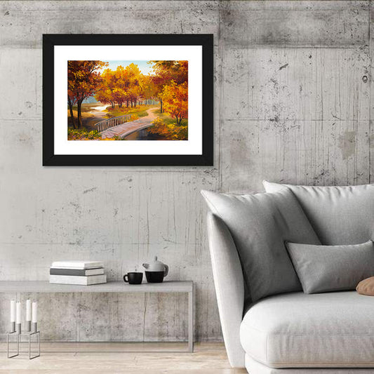 Autumn Forest With River & Bridge Wall Art