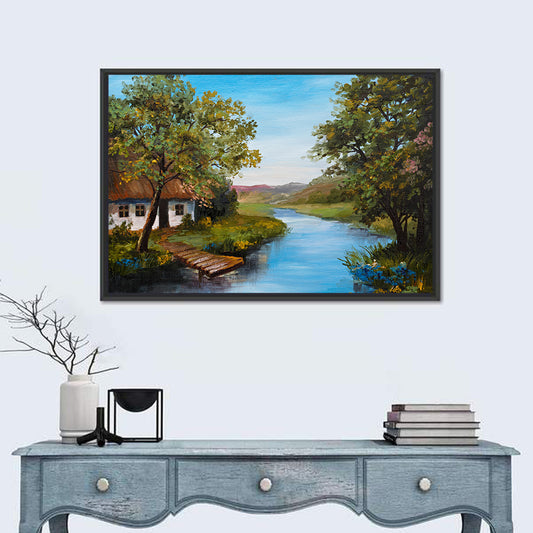 Village Farmhouse & River Wall Art