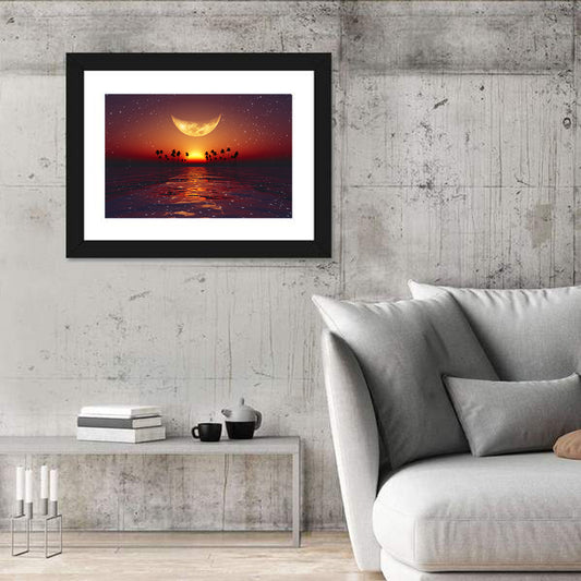 Yellow Moon Over Red Sunset At Tropical Sea Wall Art