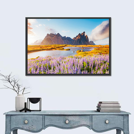 Majestic lupine flowers in Vestrahorn Wall Art