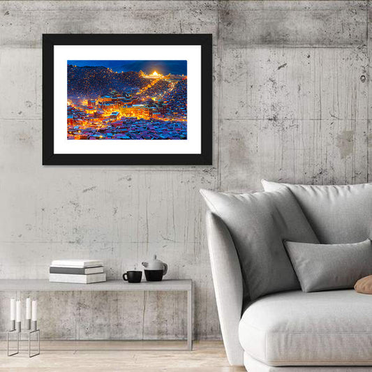 Monastery At Night In Larung Gar Buddhist Academy China Wall Art