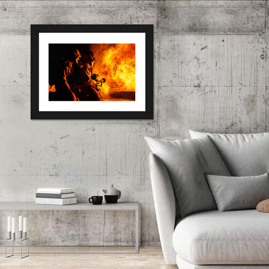 Firefighters Sparying Twirl Water Fog Wall Art