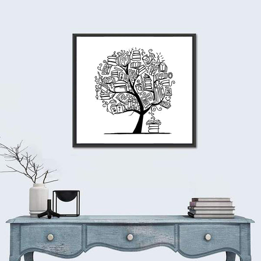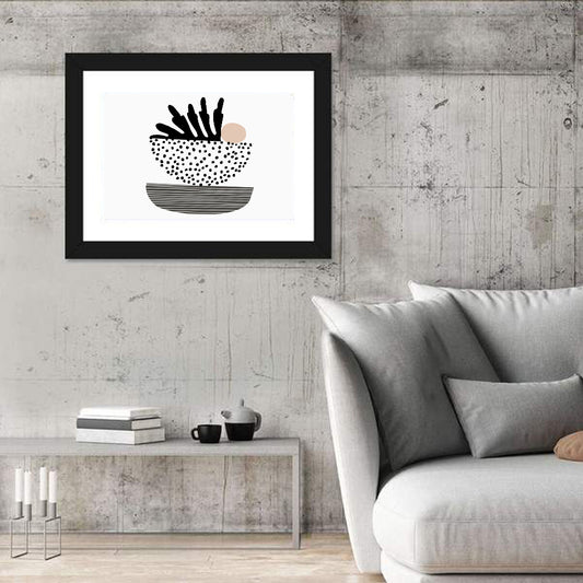 Vertical Bowls & Palm Leaf Illustration Wall Art
