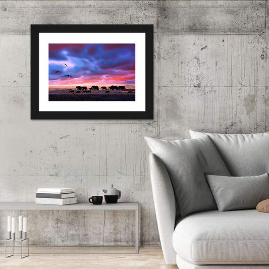 Elephants In The Sunset Wall Art