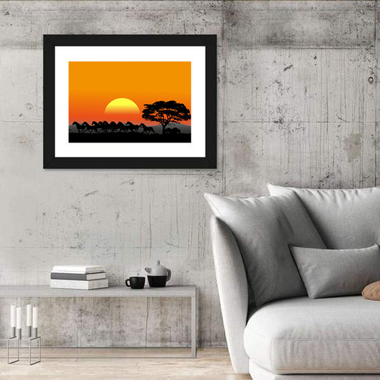 Elephants In Savannah Sunset Wall Art