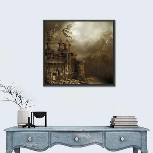Fantasy Castle With Dragon Wall Art