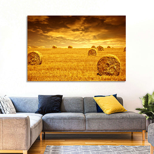 Wheat Haystacks Field Wall Art