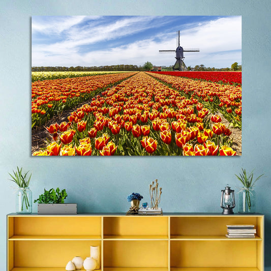 Windmill in Tulip Farm Field Wall Art