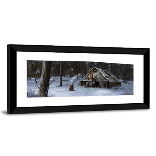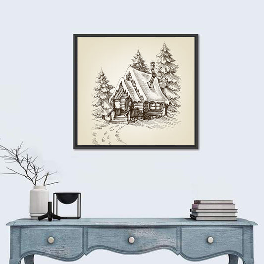 Winter Cabin Illustration Wall Art