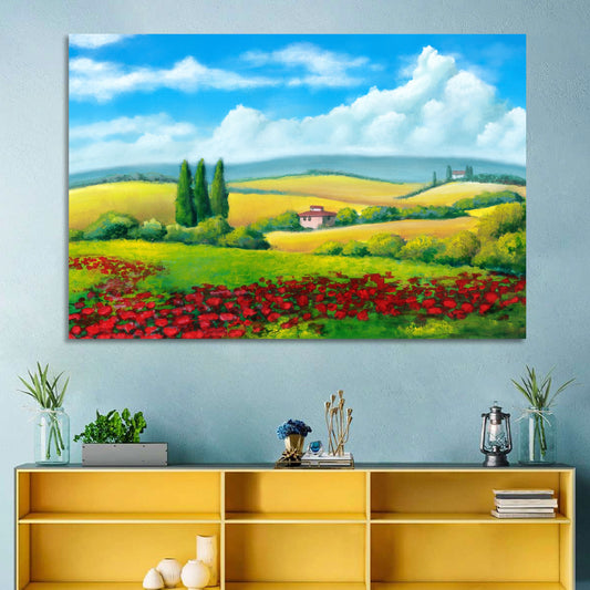 Tuscany Hill Covered By Red Flowers Wall Art