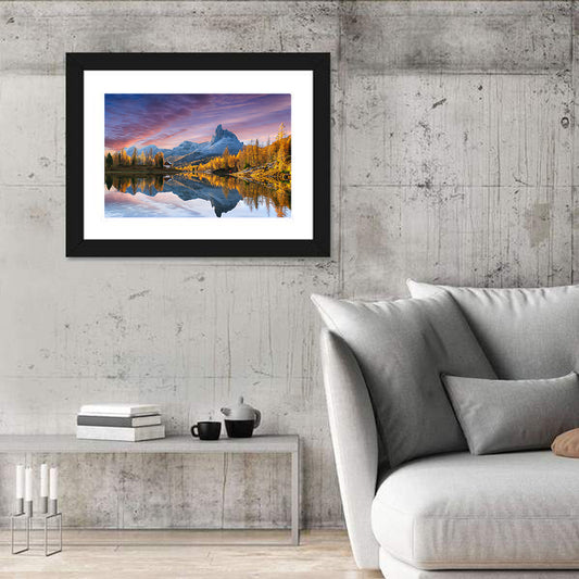 Lake Federa In Dolomites At Sunset Wall Art