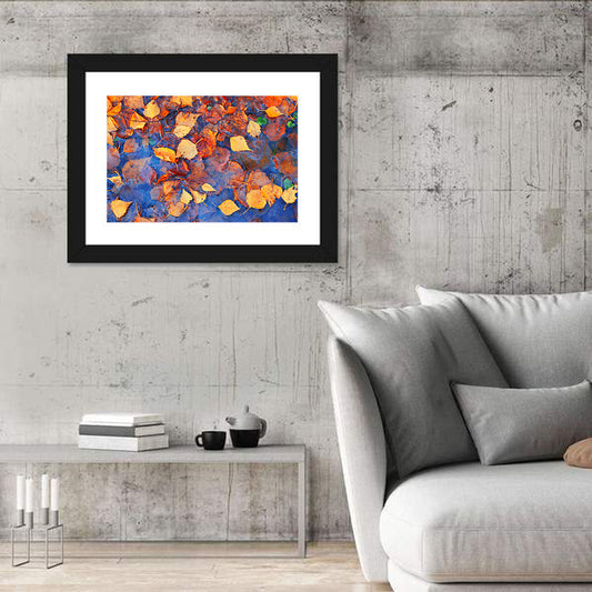 Fall Season Leaves In Rain Puddle Wall Art