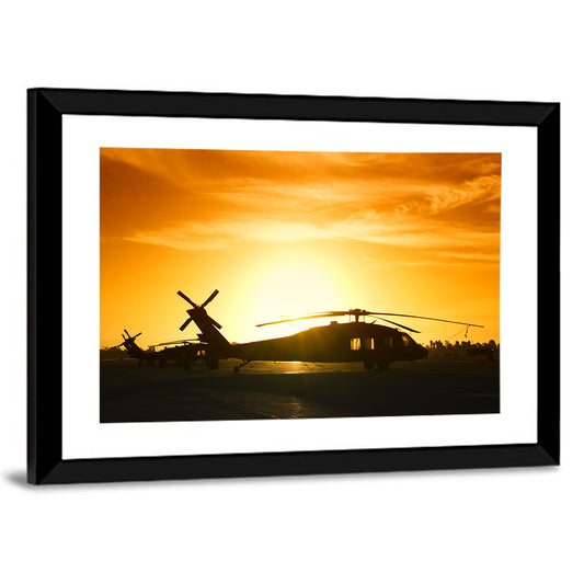 Military Helicopter at Sunset Wall Art