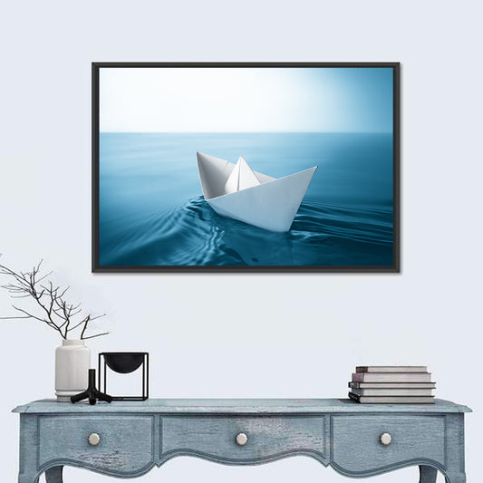 Paper Sailboat On Blue Water Wall Art