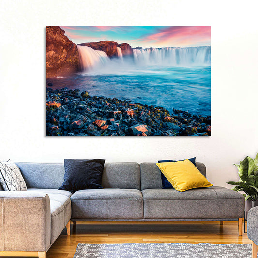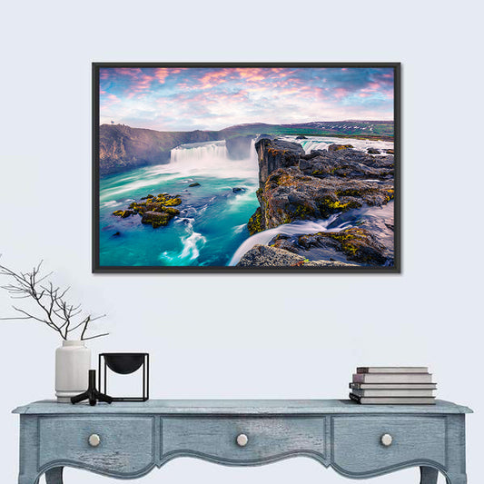 Godafoss Waterfall At Sunset Wall Art