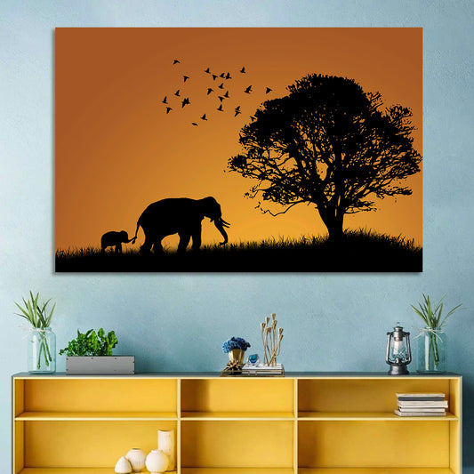 African Elephant Silhouette Wall Art