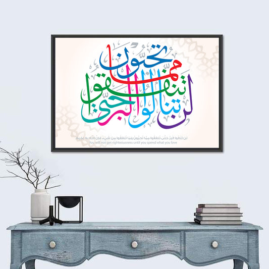 "You will not get righteousness until you spend what you love" Calligraphy Wall Art