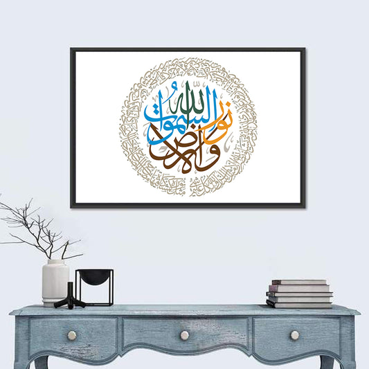Islamic Calligraphy "Allah Is The Light Of Heavens & Earth" Wall Art