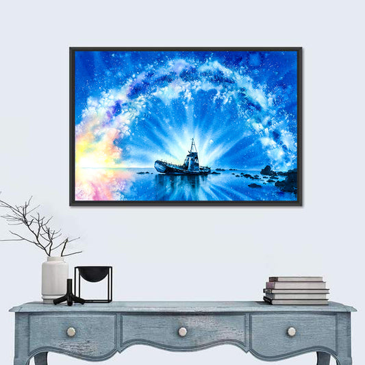 Ship With Milky Way Wall Art