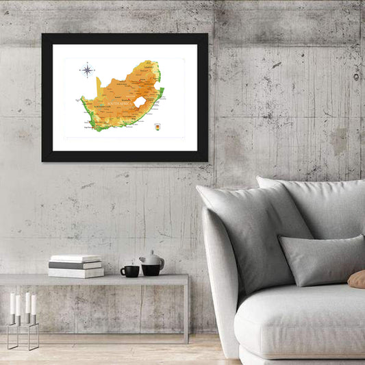South Africa Physical Map Wall Art