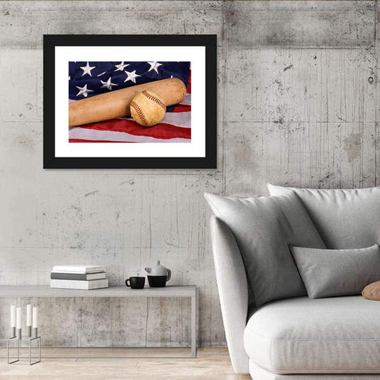 Baseball & Bat With American Flag Wall Art
