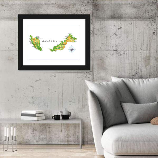 Malaysia Physical Map Wall Art
