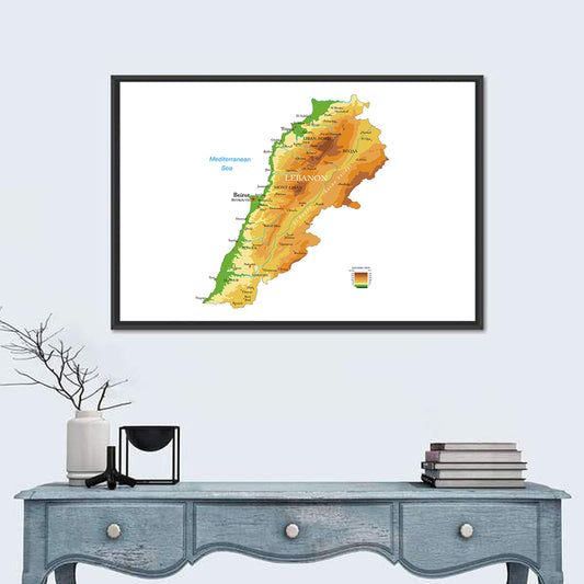 Lebanon Physical Map Wall Art