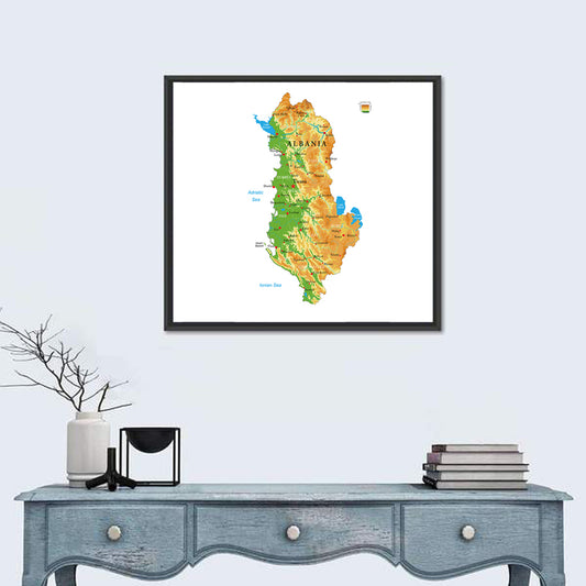 Albania Physical Map Wall Art