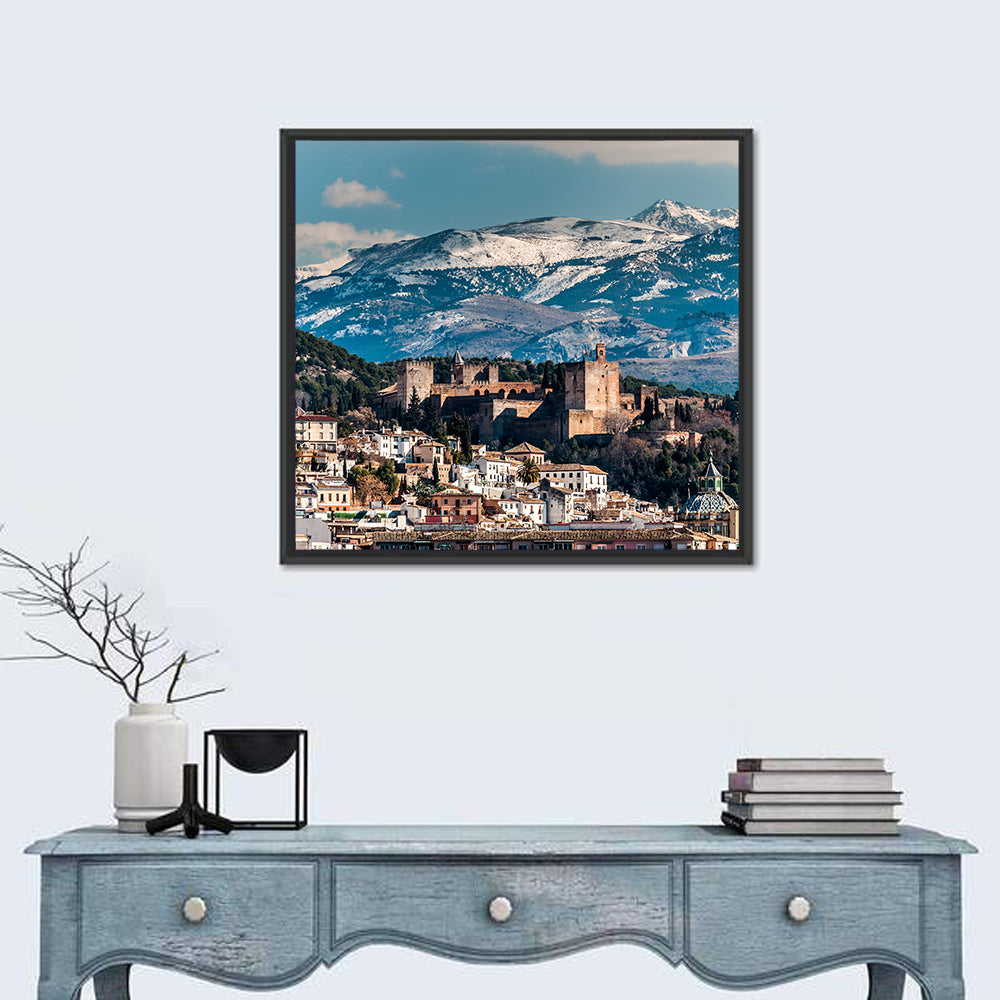 Add a touch of culture and beauty to your home with our Alhambra City View Wall Art. This striking piece features the famous town of Alhambra against the backdrop of the Sierra Nevada mountains. Guaranteed to catch the eye and evoke powerful emotions, this CanvasPiece art print is a must-have for any art lover or home decorator.