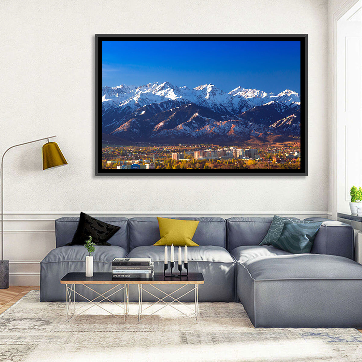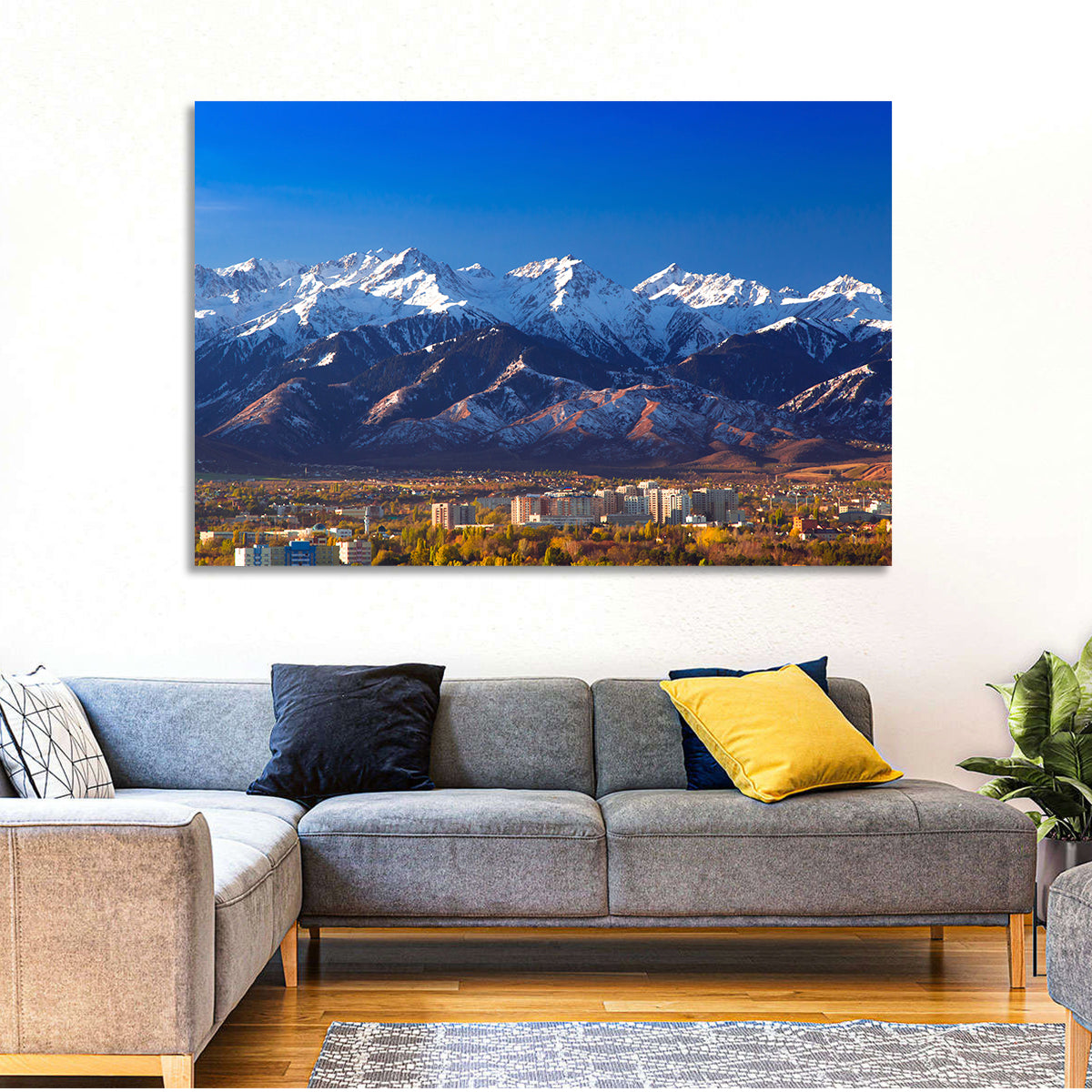 Whether you love art or just looking to decorate your home, this striking and powerful Almaty Snowy Mountains Wall Art is an eye-catching decor element that can't go unnoticed. This art print by CanvasPiece is designed to resonate and spark a mix of feelings.