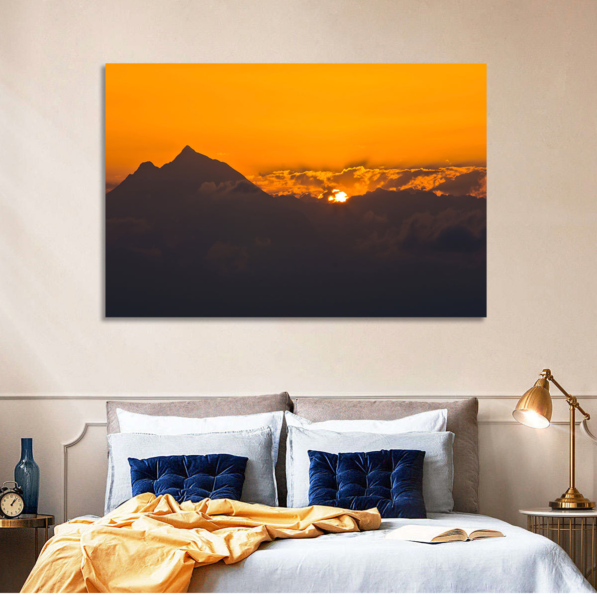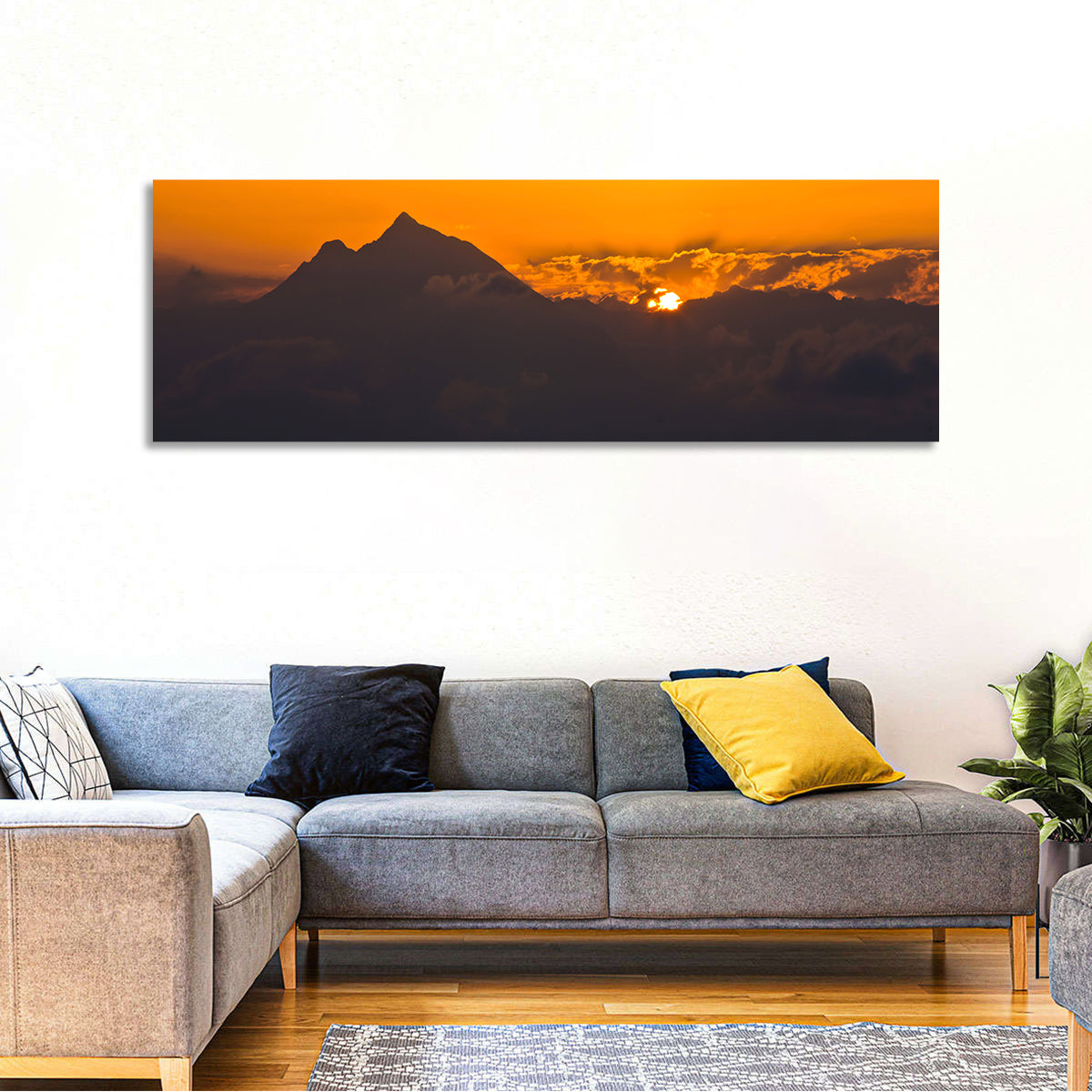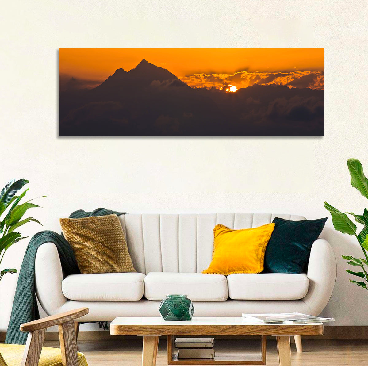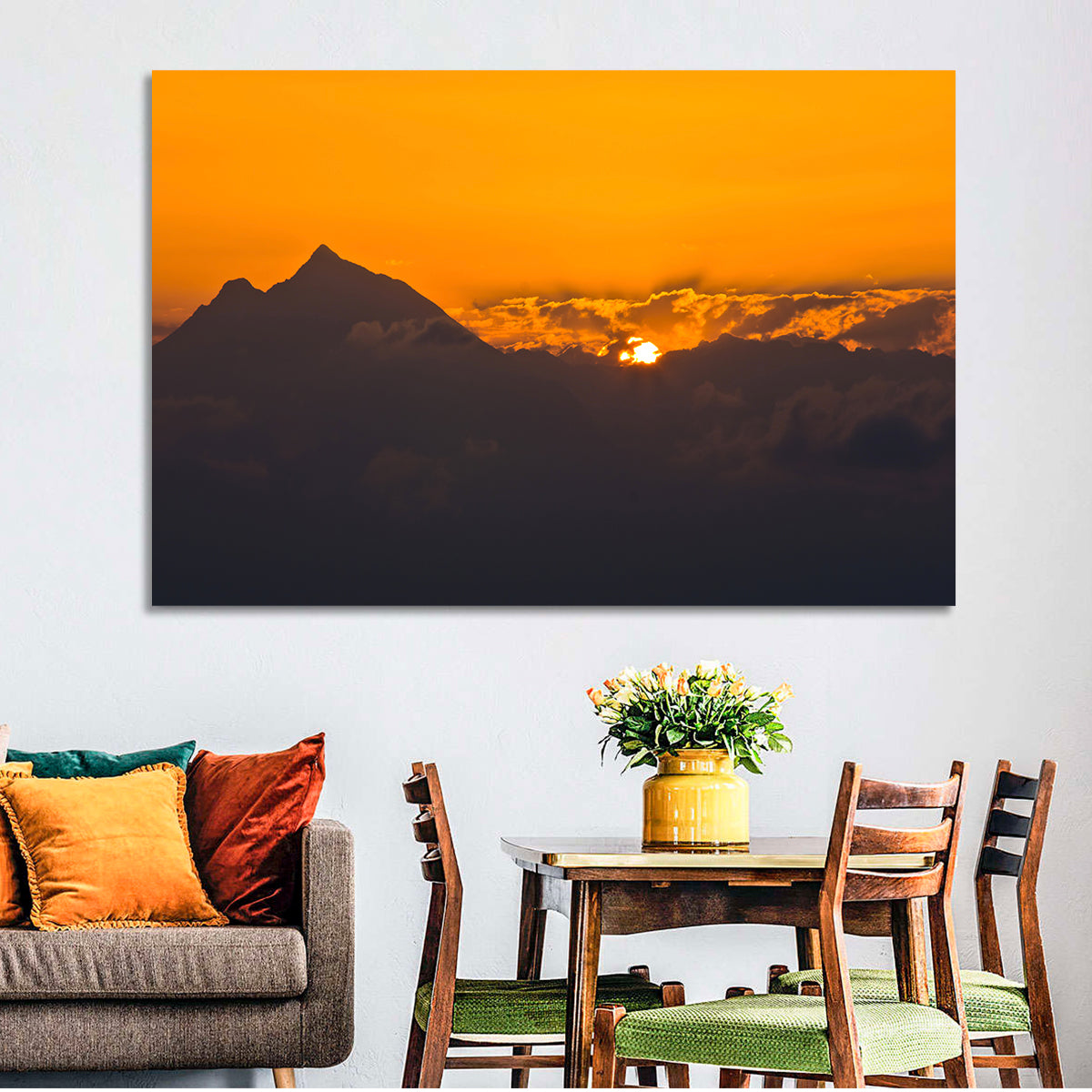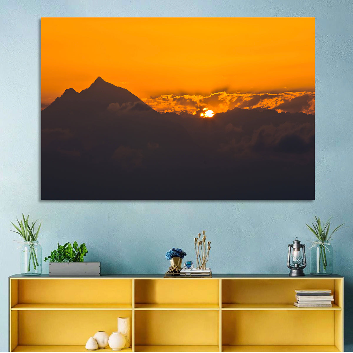 Whether you love art or just looking to decorate your home, this striking and powerful Athos Mountain Sunrise Wall Art is an eye-catching decor element that can't go unnoticed. This art print by CanvasPiece is designed to resonate and spark a mix of feelings.