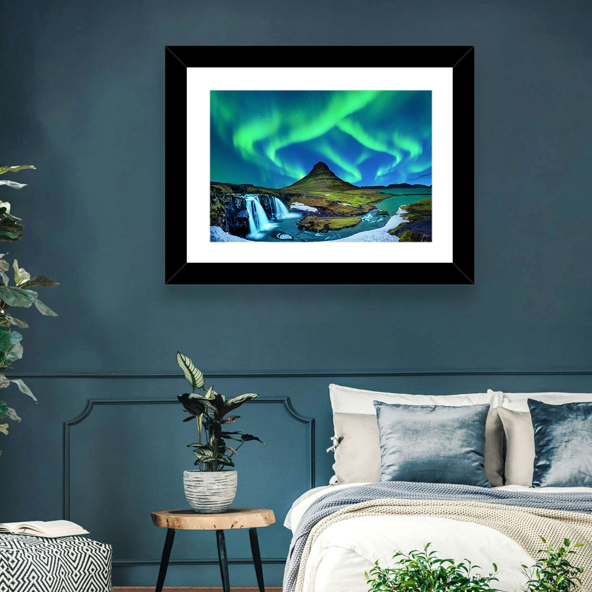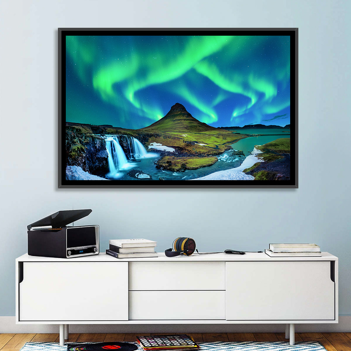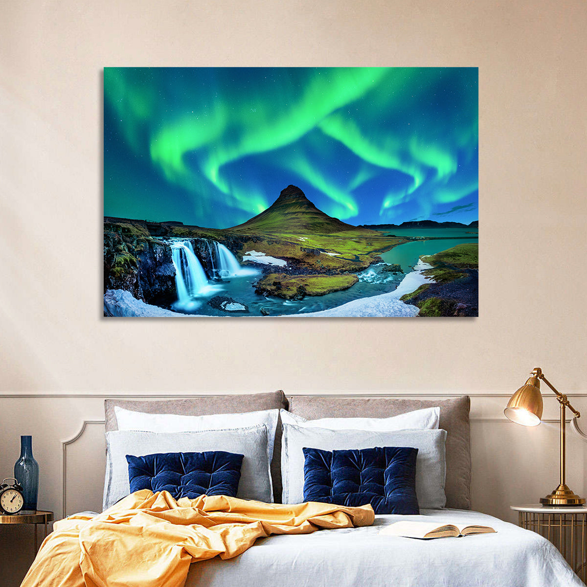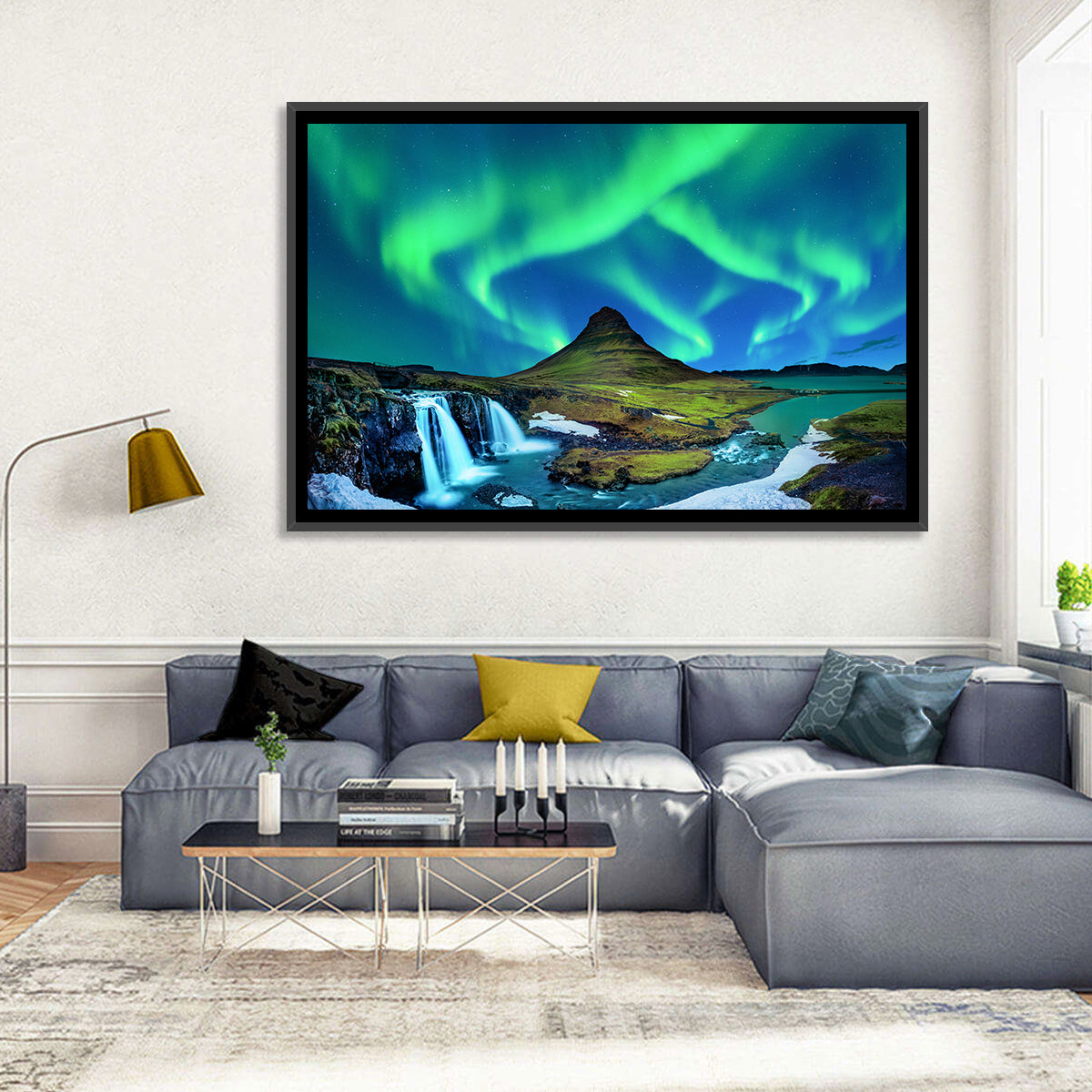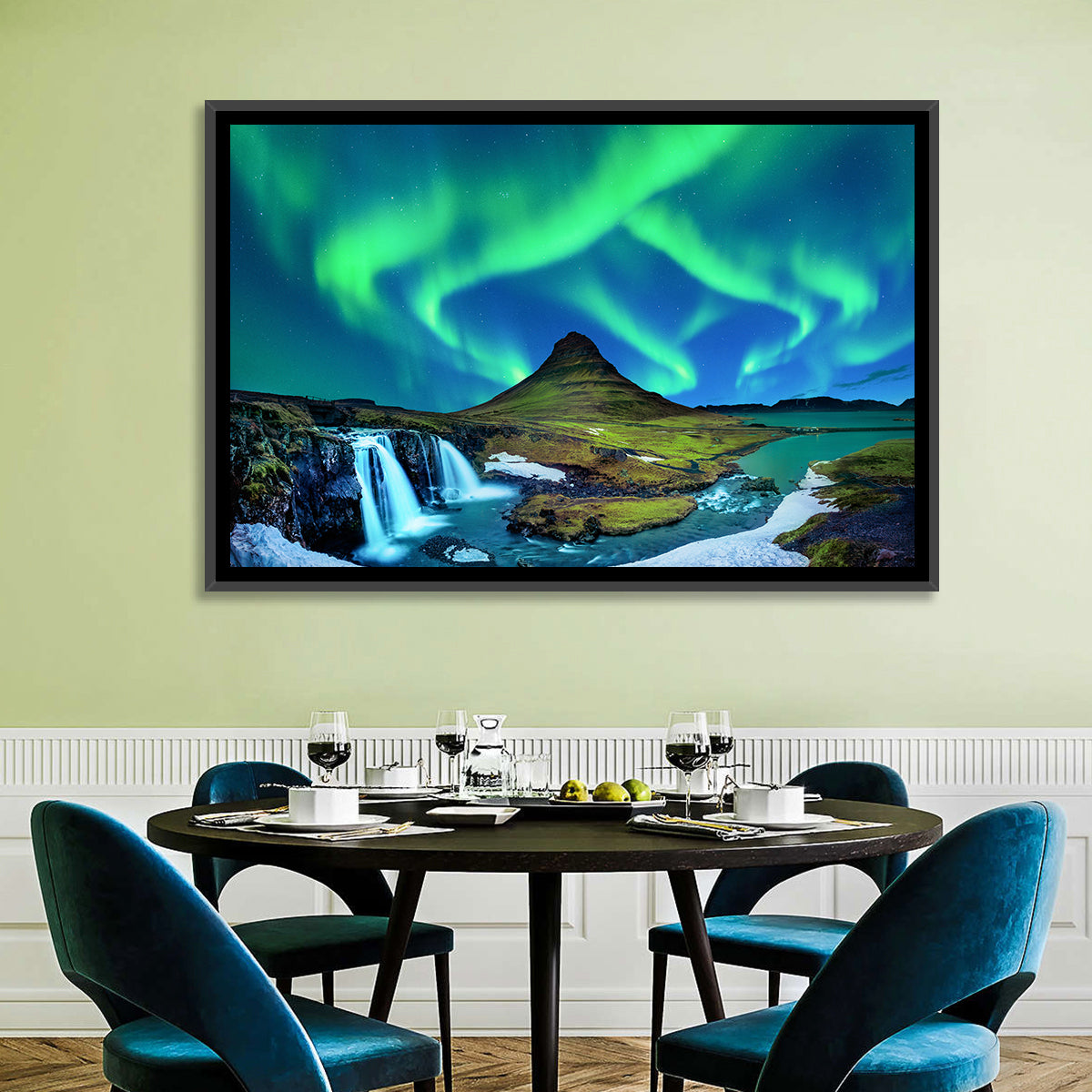 Whether you love art or just looking to decorate your home, this striking and powerful Aurora Borealis Kirkjufell Wall Art is an eye-catching decor element that can't go unnoticed. This art print by CanvasPiece is designed to resonate and spark a mix of feelings.