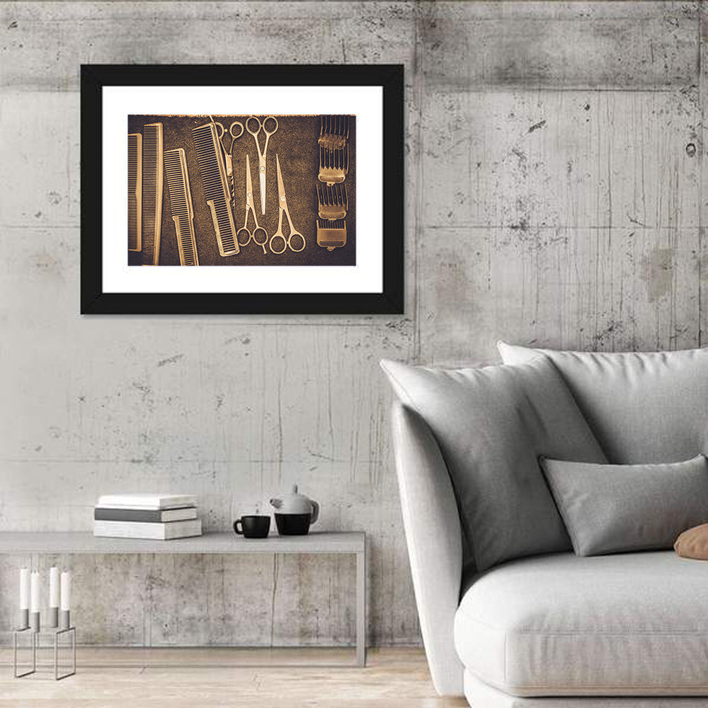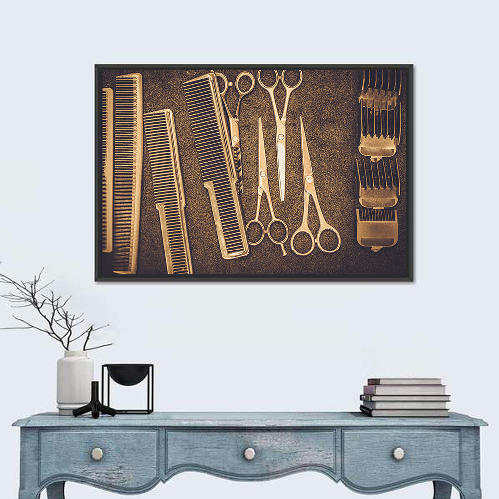 Add a touch of style to your space with this striking Barber Shop Accessories wall art. Designed to resonate and spark emotion, this print by CanvasPiece is perfect for home decor or for those in the hair industry. Create a professional atmosphere with this eye-catching piece.