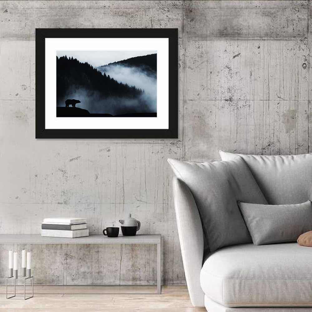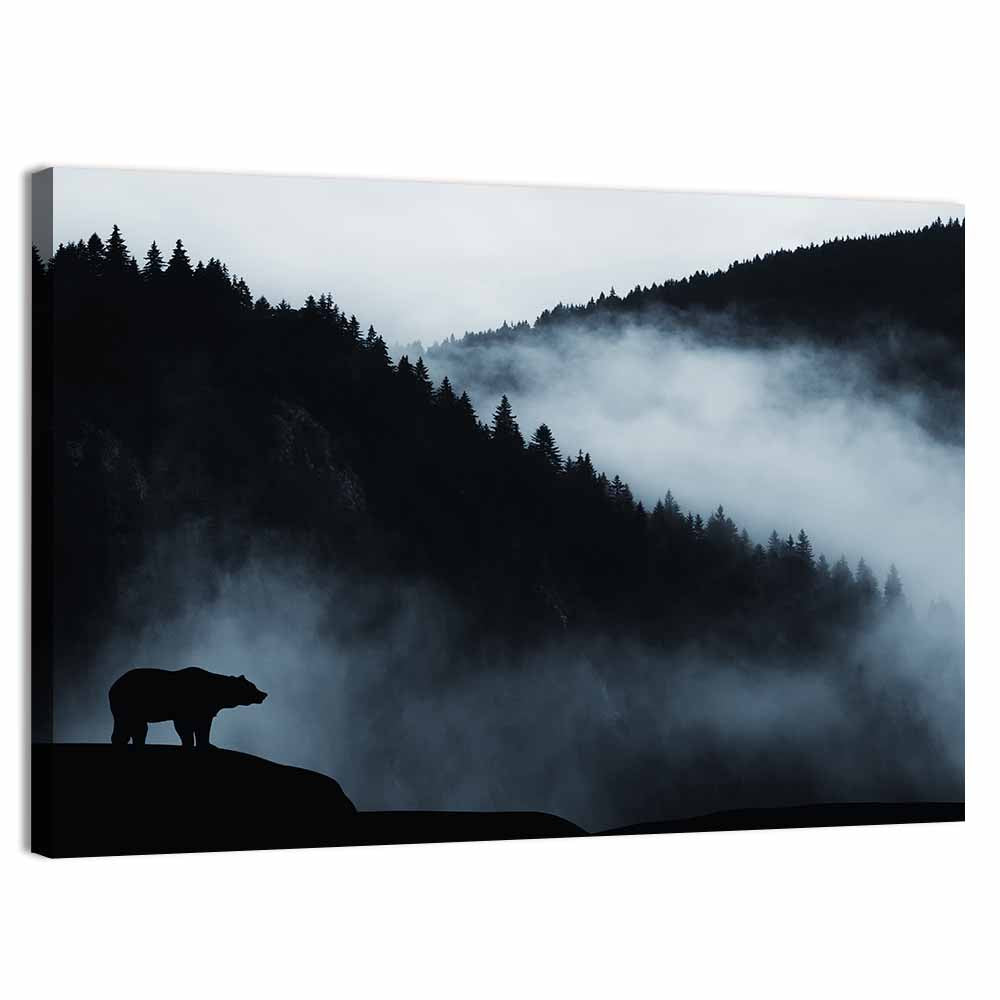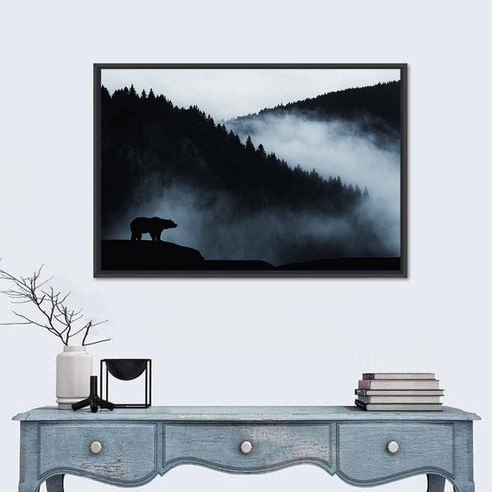 Whether you love art or just looking to decorate your home, this striking and powerful bear on cliff in misty mountains Wall Art is an eye-catching decor element that can't go unnoticed. This art print by CanvasPiece is designed to resonate and spark a mix of feelings.
