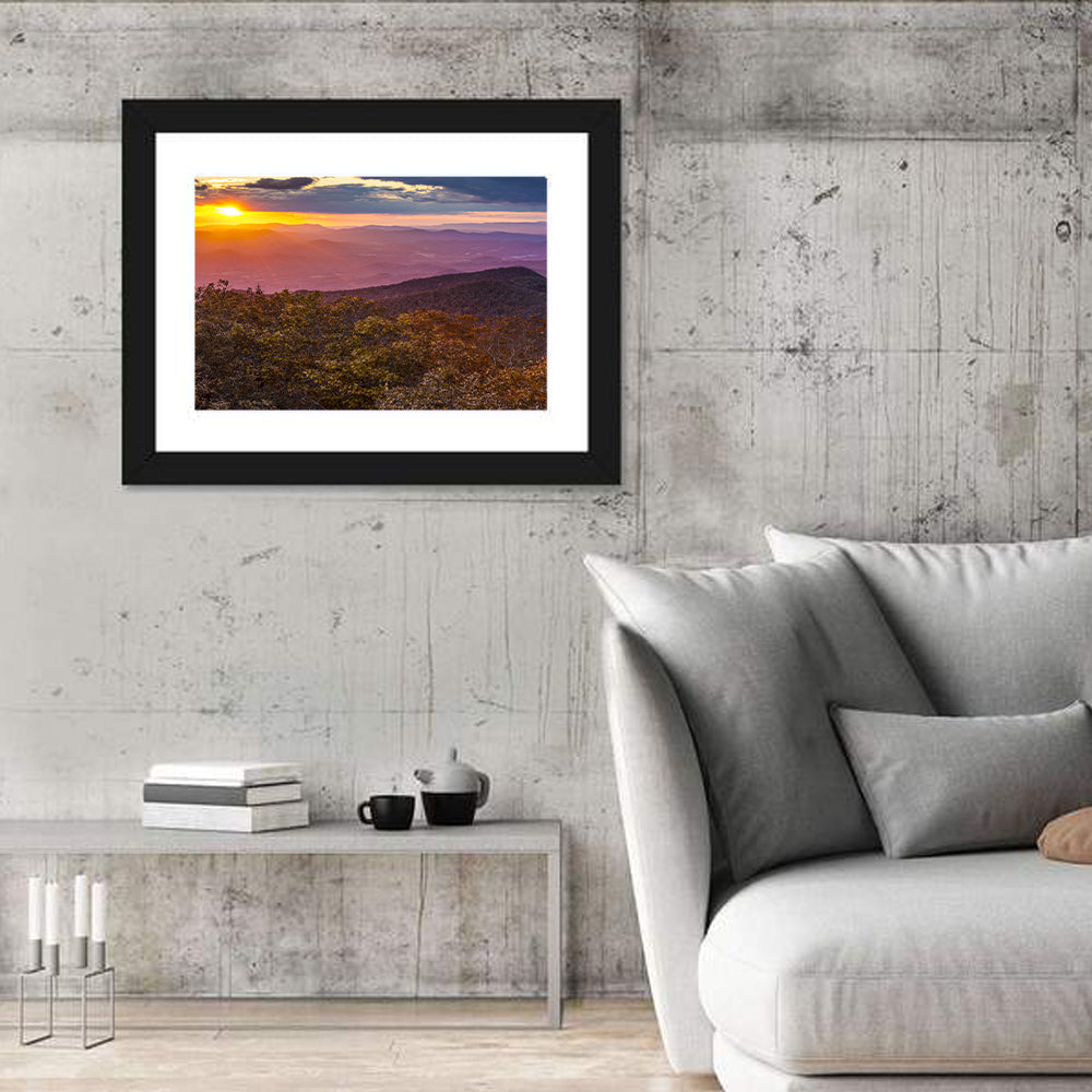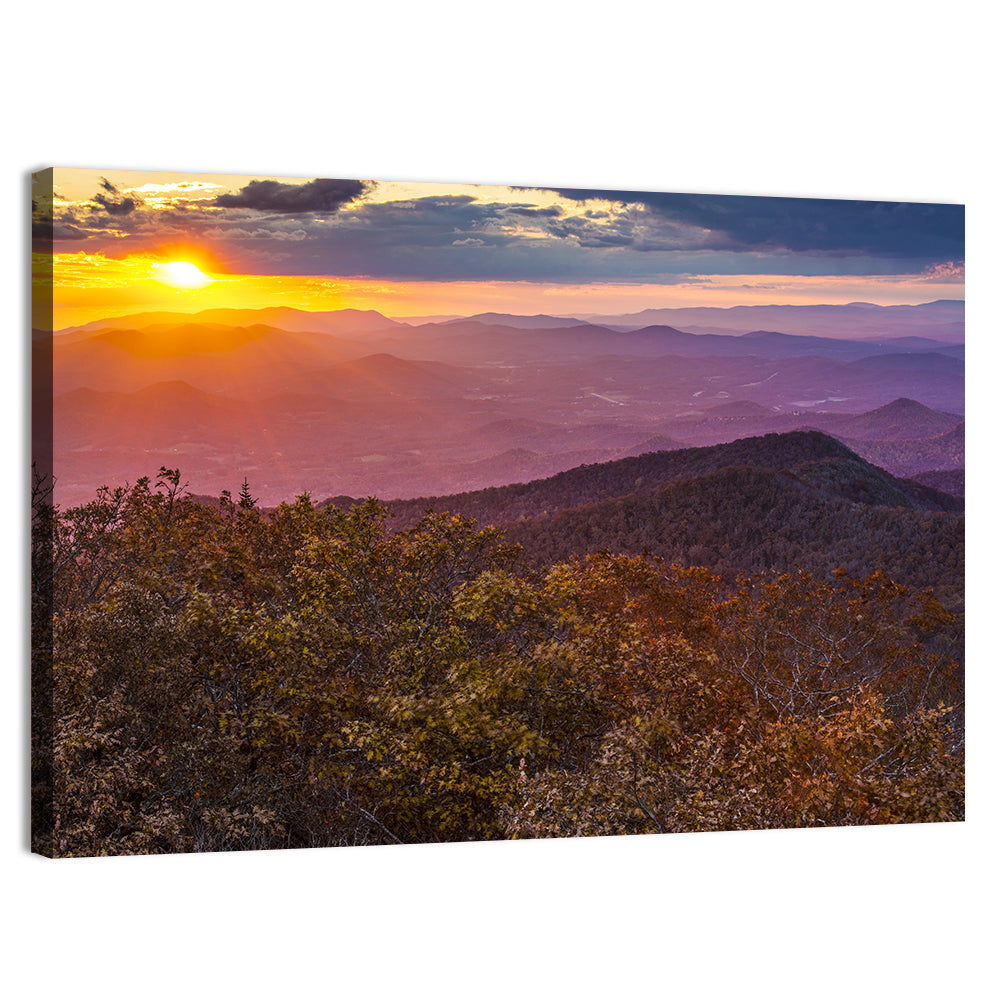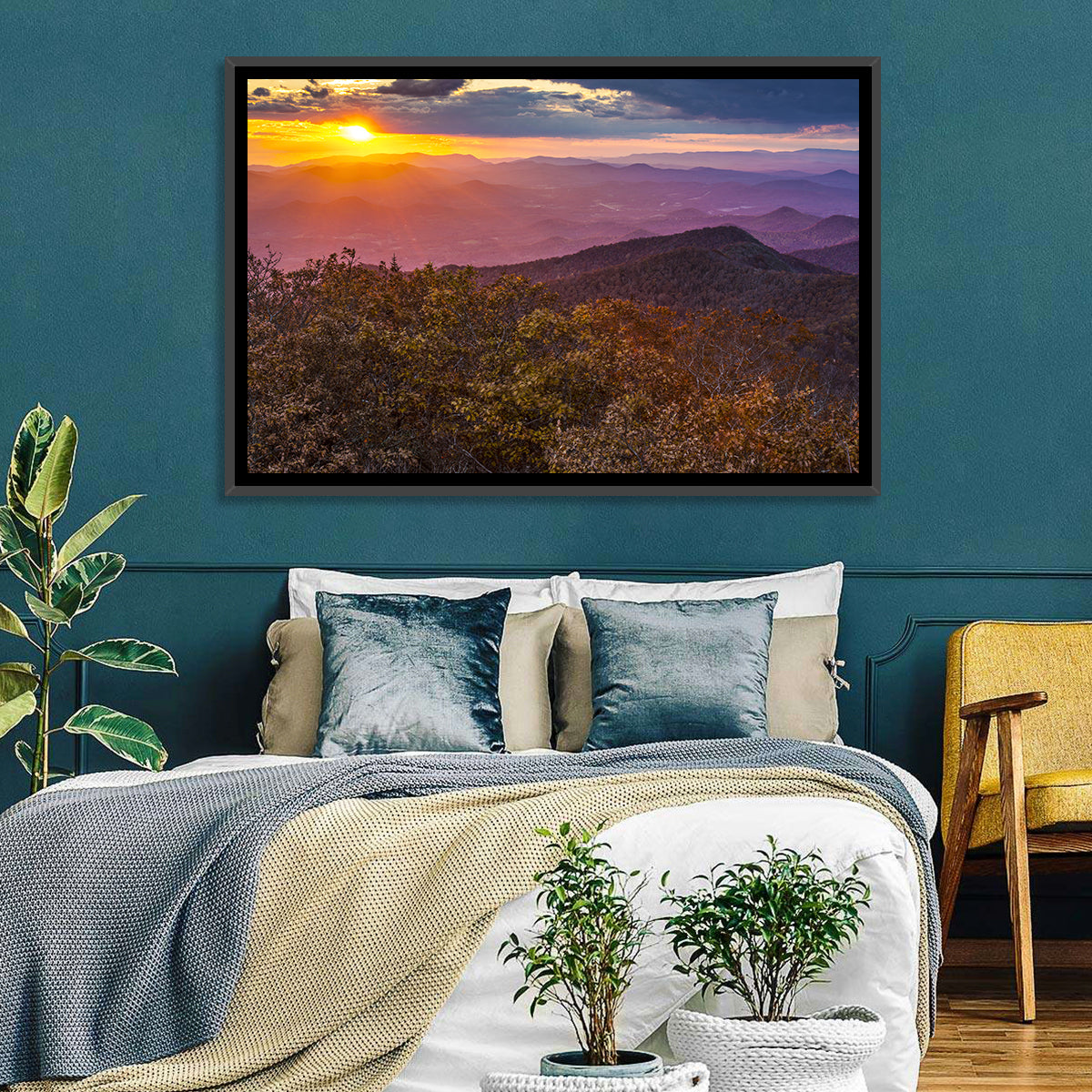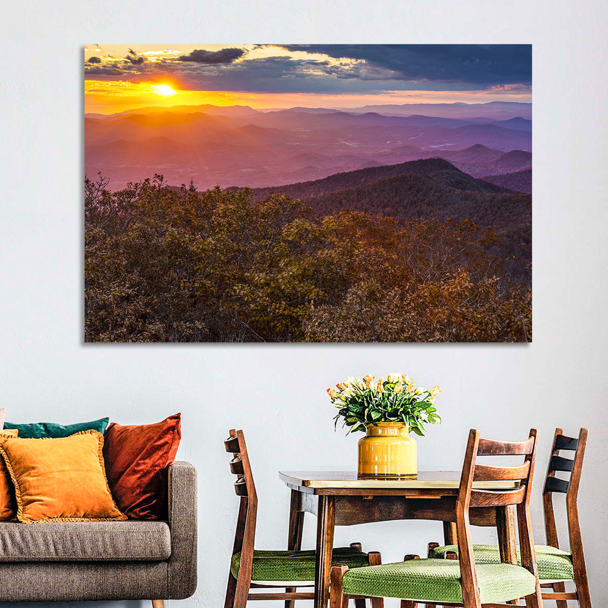 Whether you love art or just looking to decorate your home, this striking and powerful Blue Ridge Mountains Sunset Wall Art is an eye-catching decor element that can't go unnoticed. This art print by CanvasPiece is designed to resonate and spark a mix of feelings.