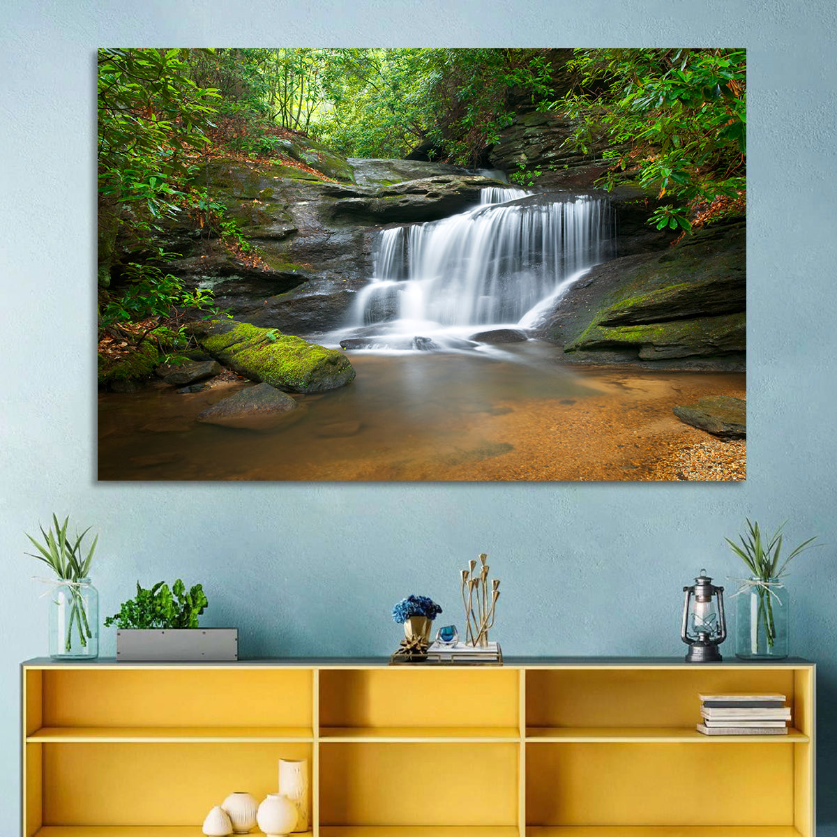Whether you love art or just looking to decorate your home, this striking and powerful Blue Ridge Mountains Waterfall Wall Art is an eye-catching decor element that can't go unnoticed. This art print by CanvasPiece is designed to resonate and spark a mix of feelings.