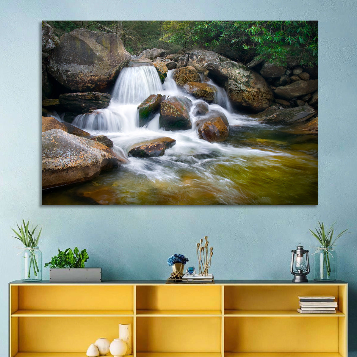 Whether you love art or just looking to decorate your home, this striking and powerful Blue Ridge Waterfall Wall Art is an eye-catching decor element that can't go unnoticed. This art print by CanvasPiece is designed to resonate and spark a mix of feelings.