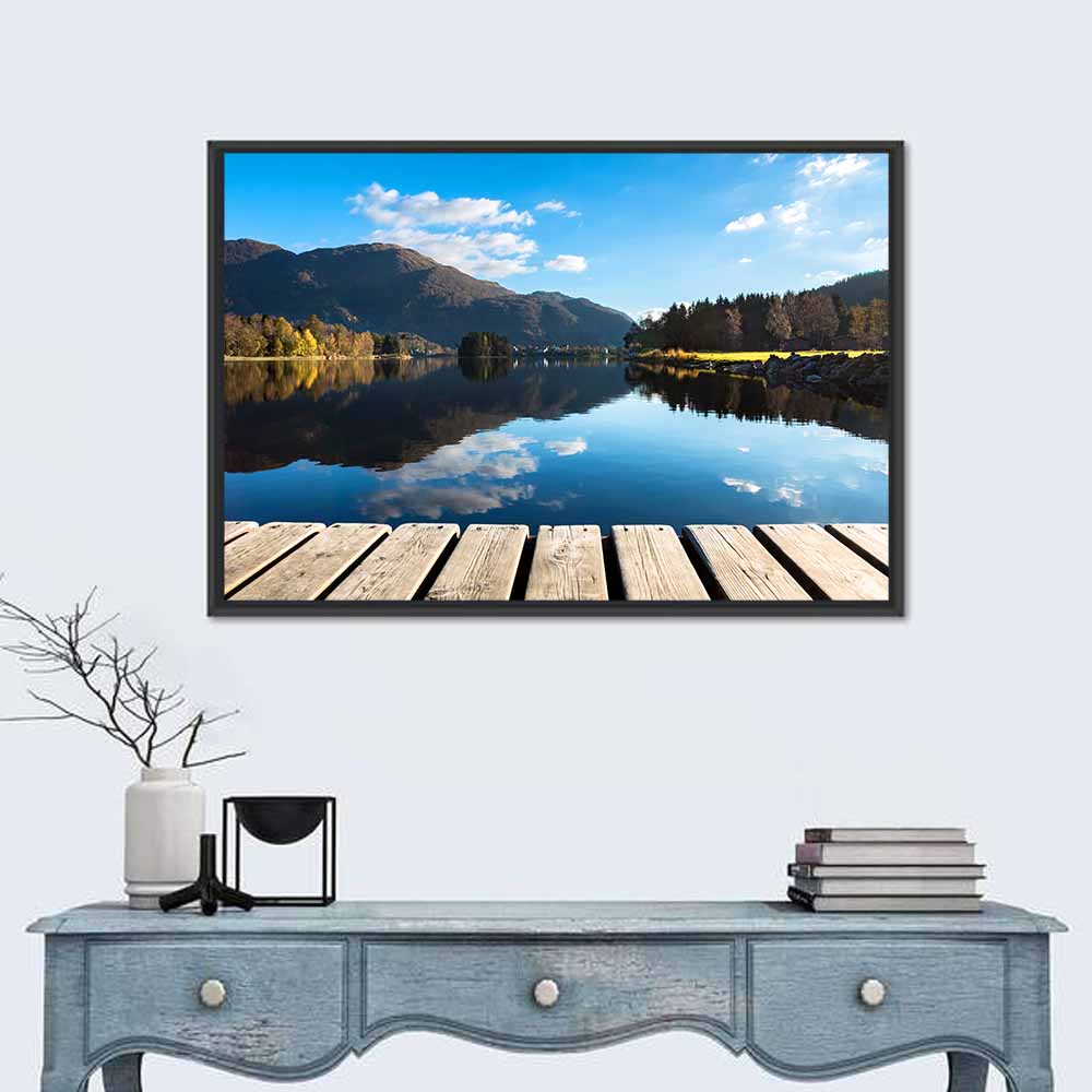 Whether you love art or just looking to decorate your home, this striking and powerful boardwalk in mountain lake Wall Art is an eye-catching decor element that can't go unnoticed. This art print by CanvasPiece is designed to resonate and spark a mix of feelings.