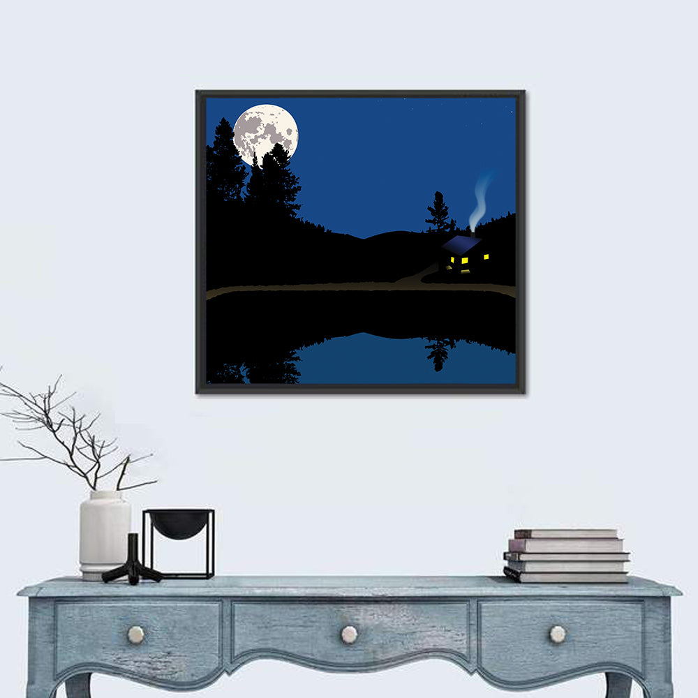 Whether you love art or just looking to decorate your home, this striking and powerful cabin house in lake mountain wall art is an eye-catching decor element that can't go unnoticed. This art print by CanvasPiece is designed to resonate and spark a mix of feelings.