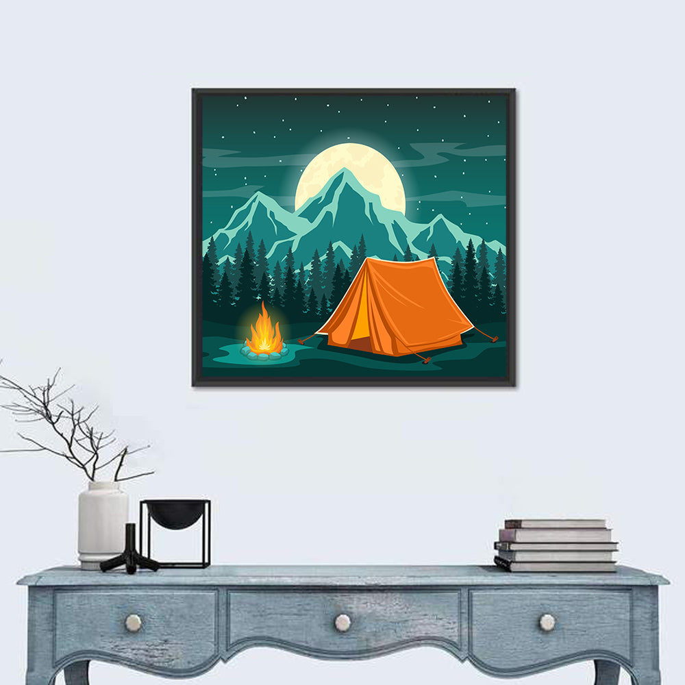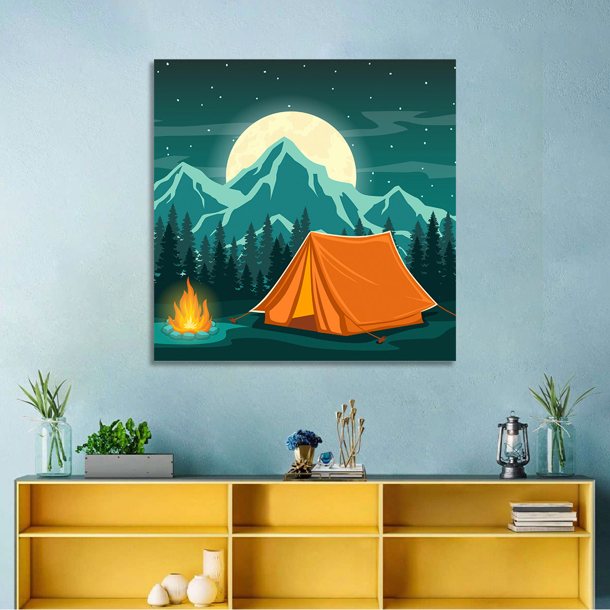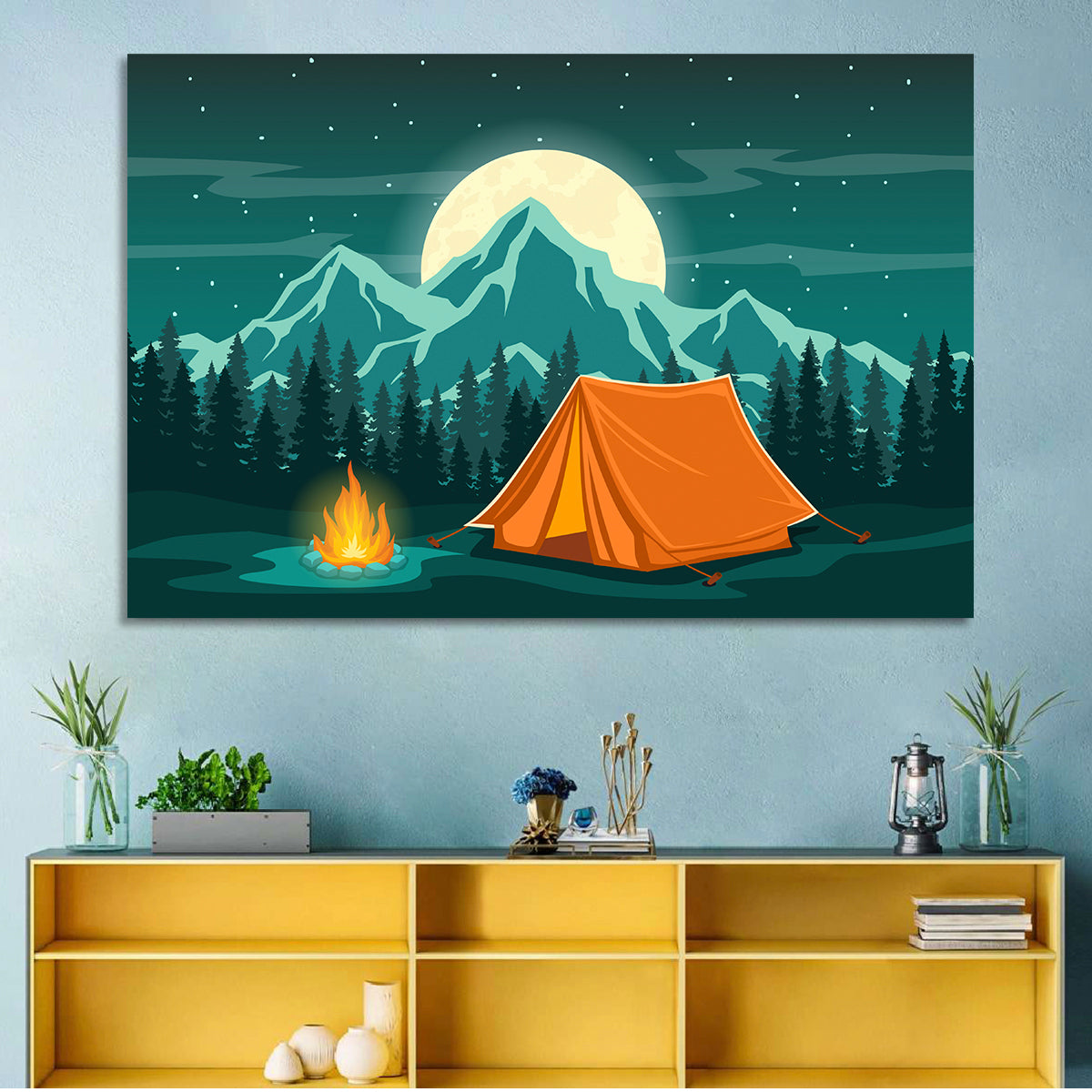 Whether you love art or just looking to decorate your home, this striking and powerful Camping Concept Wall Art is an eye-catching decor element that can't go unnoticed. This art print by CanvasPiece is designed to resonate and spark a mix of feelings.