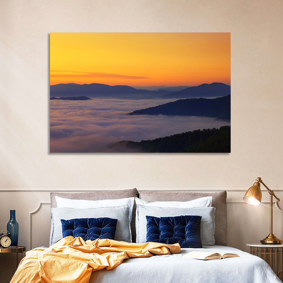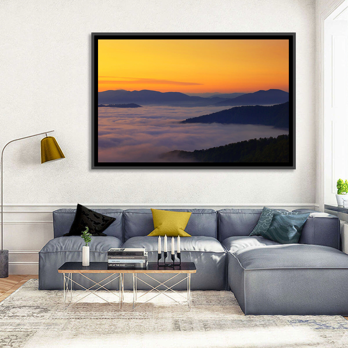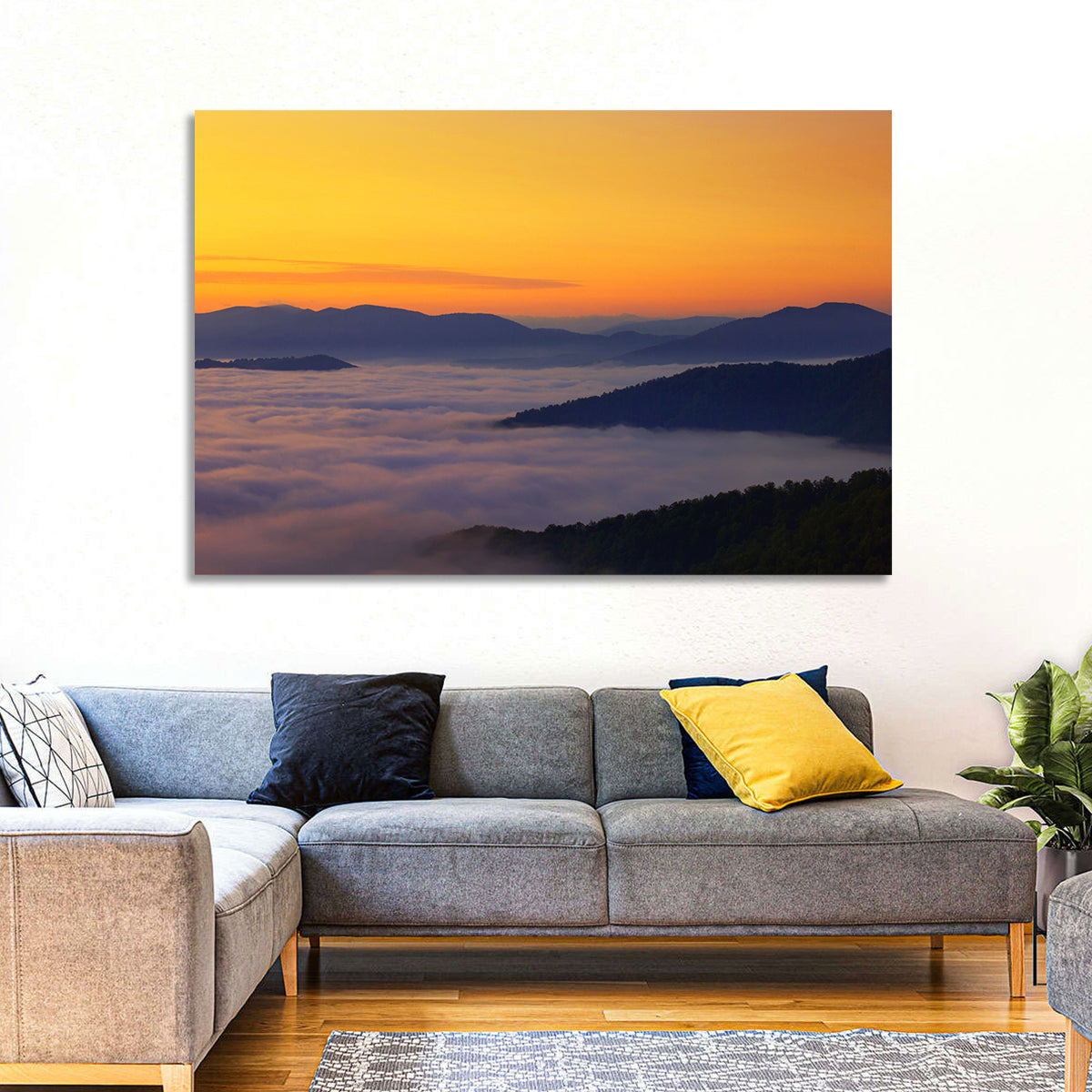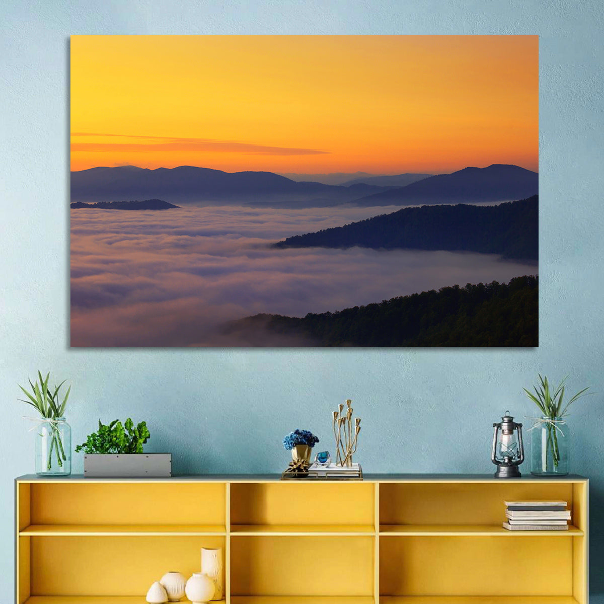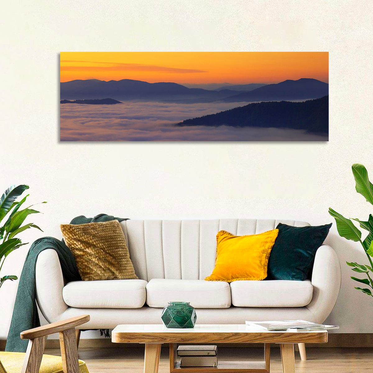Whether you love art or just looking to decorate your home, this striking and powerful Cloudy Mountains Sunset Wall Art is an eye-catching decor element that can't go unnoticed. This art print by CanvasPiece is designed to resonate and spark a mix of feelings.