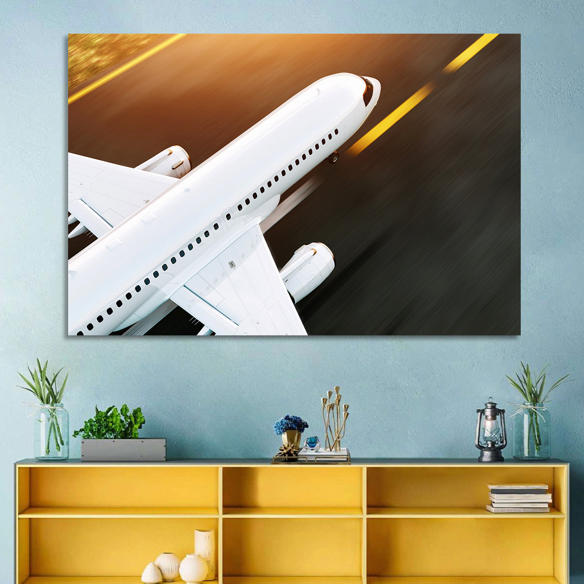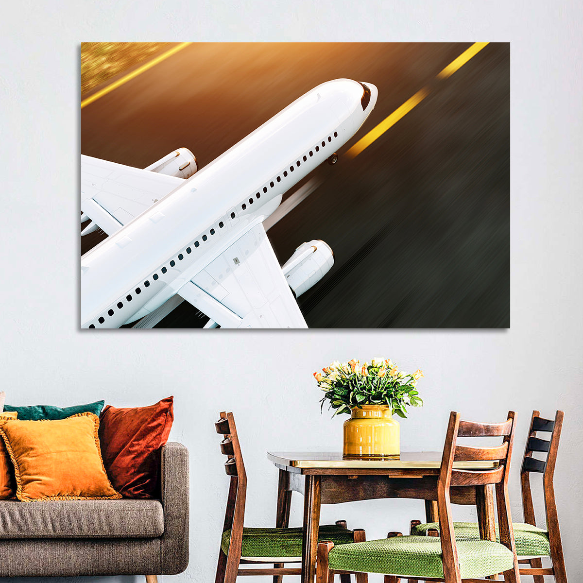 Whether you love art or just looking to decorate your home, this striking and powerful Commercial Airplane Taking Off Wall Art is an eye-catching decor element that can't go unnoticed. This art print by CanvasPiece is designed to resonate and spark a mix of feelings.