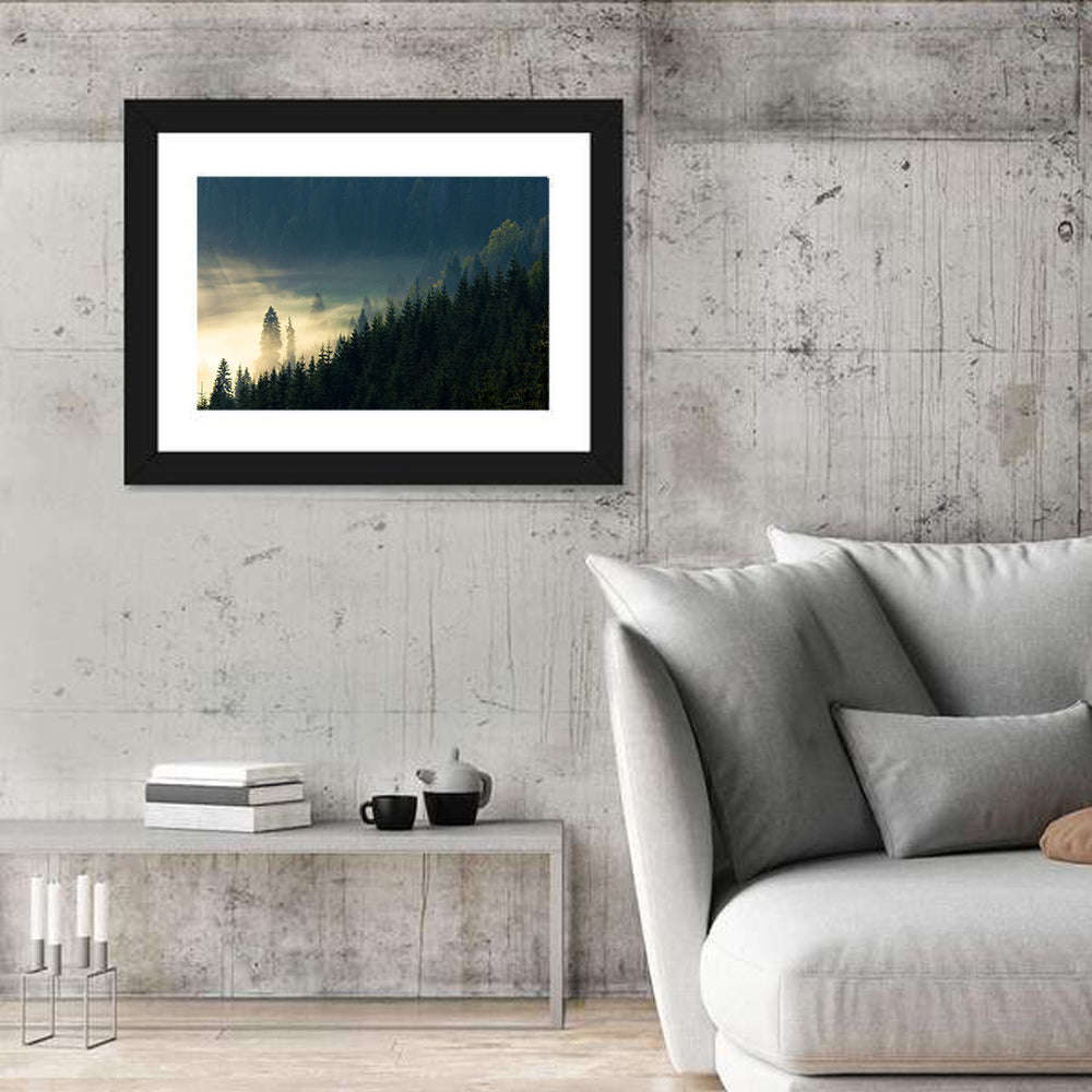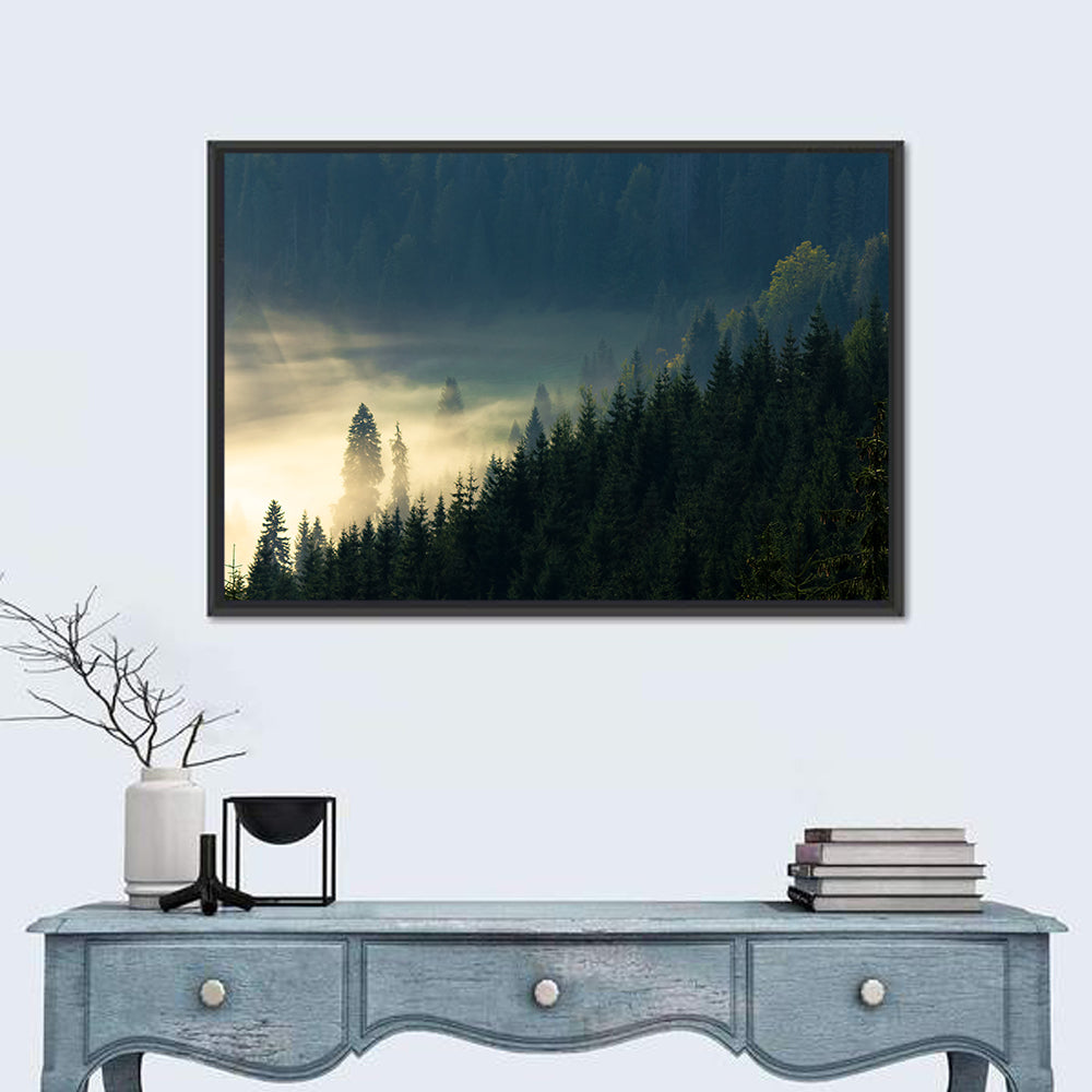 Whether you love art or just looking to decorate your home, this striking and powerful coniferous forest valley Wall Art is an eye-catching decor element that can't go unnoticed. This art print by CanvasPiece is designed to resonate and spark a mix of feelings.