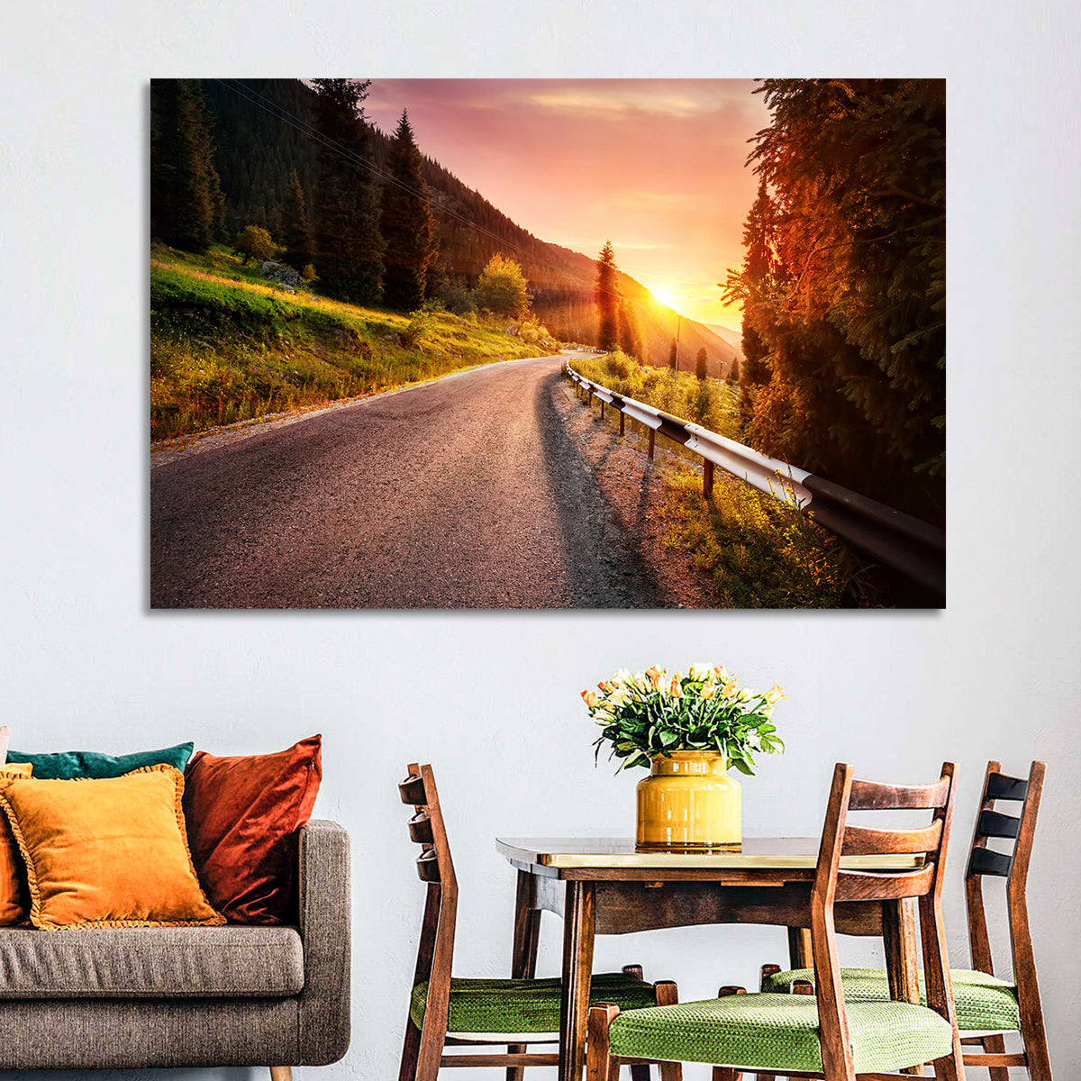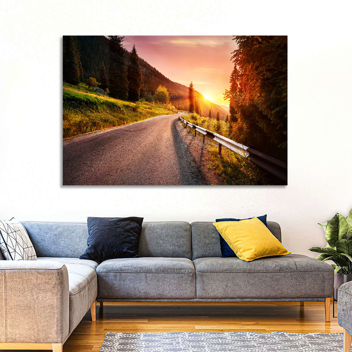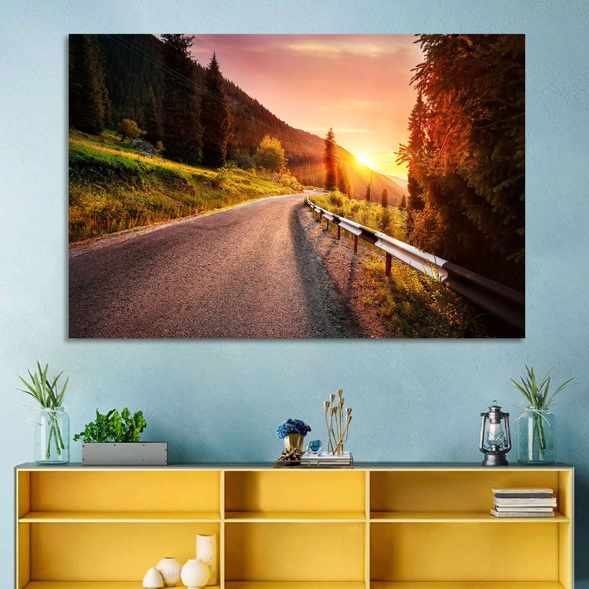 Whether you love art or just looking to decorate your home, this striking and powerful Countryside Road Sunrise Wall Art is an eye-catching decor element that can't go unnoticed. This art print by CanvasPiece is designed to resonate and spark a mix of feelings.